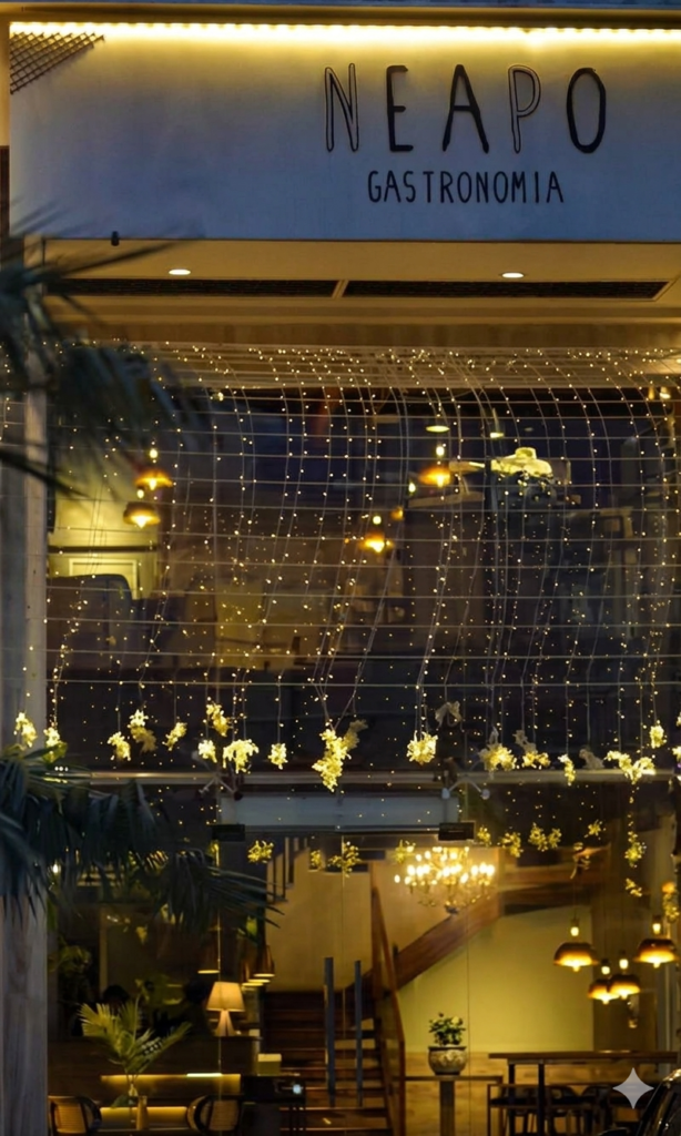 Warm lighting, the aroma of freshly baked dough, and the gentle rhythm of an open kitchen set the tone for the NEAPO experience.
